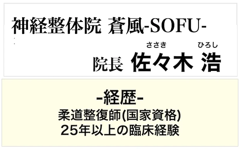 院長は柔道整復師の国家資格を保有し、整形外科の病院や整骨院・リハビリ施設などでも勤務。