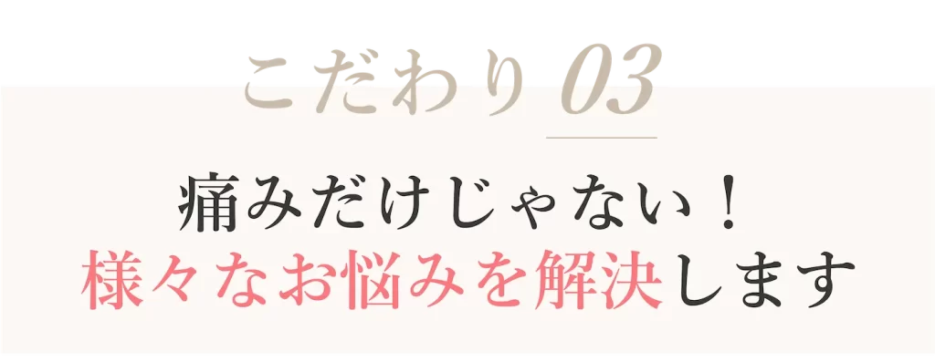 そんなお悩みをお持ちの女性にこそ、優しい刺激でゆるゆるになる本格整体をおすすめします。