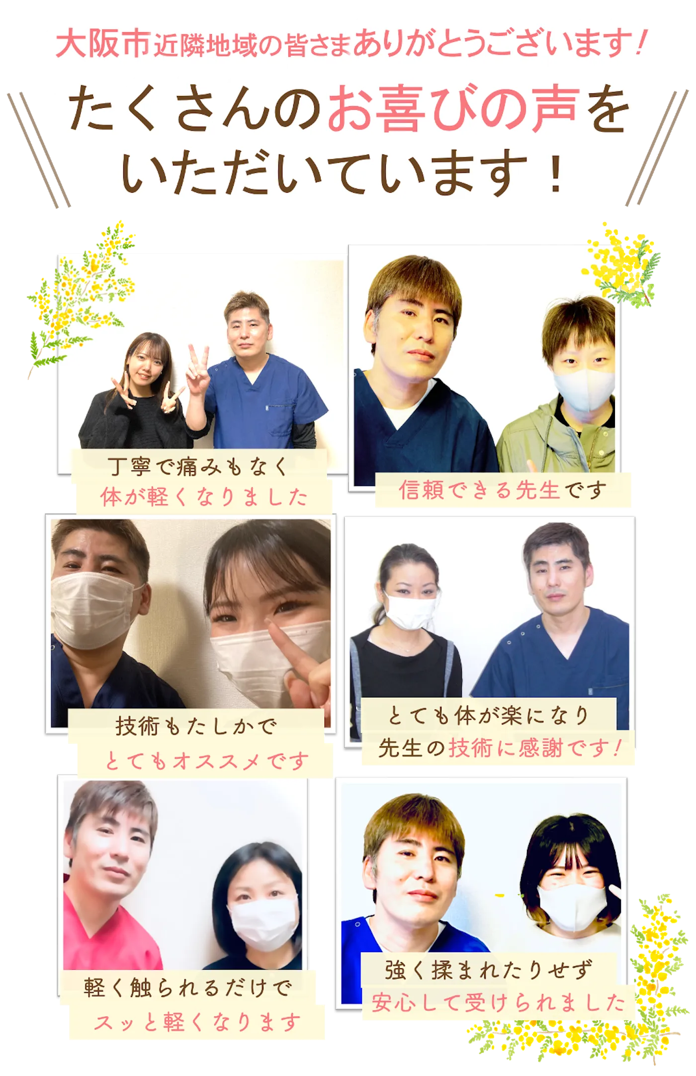 もちろん腰痛・肩こり・身体の不調など「楽になるという結果」にこだわった施術を心がけています。